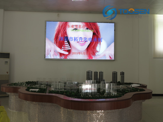 拓升P4室内全彩屏安装于茂名一方新宛售楼部,为该楼盘全方位的进行展示及宣传,增强了业主对该楼盘最直观的了解及购买。