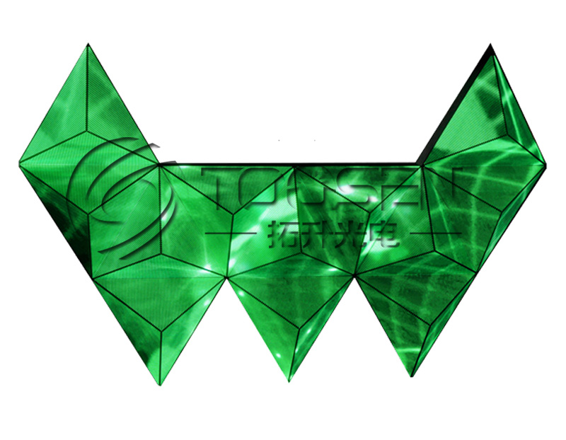 1、根据需要拼接成菱形、三角形等多边形显示屏,用作室内墙面、地面的装饰、