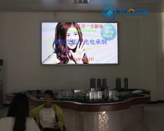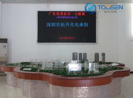 拓升P4室内全彩屏安装于茂名一方新宛售楼部,为该楼盘全方位的进行展示及宣传,增强了业主对该楼盘最直观的了解及购买。