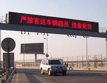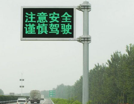 2、高速公路可变情报板,为驾驶人员提示目前的道路路况信息,如前方施工、车祸地点、强风、浓雾等警示标语;